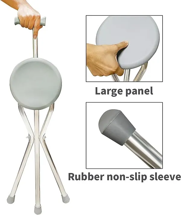 Dual Purpose Design: Functions as a sturdy walking stick and a portable stool, allowing users to rest comfortably whenever needed.